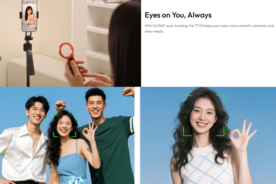 เทคโนโลยี AI Auto-Tracking ล้ำสมัย: ระบบติดตาม 360° แบบอัตโนมัติ ไม่พลาดทุกการเคลื่อนไหว Smart Face Tracking ติดตามใบหน้าอย่างแม่นยำ Smart Body Tracking และ Back-view Tracking ระยะการติดตาม 1-4 เมตร ให้ความยืดหยุ่นในการใช้งาน