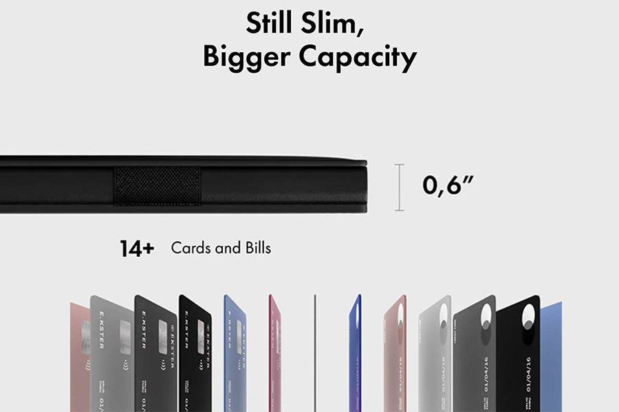 - การจัดเก็บรองรับบัตรและธนบัตรได้ 1-14 ใบ, ความจุที่แนะนำ: 9 ใบ