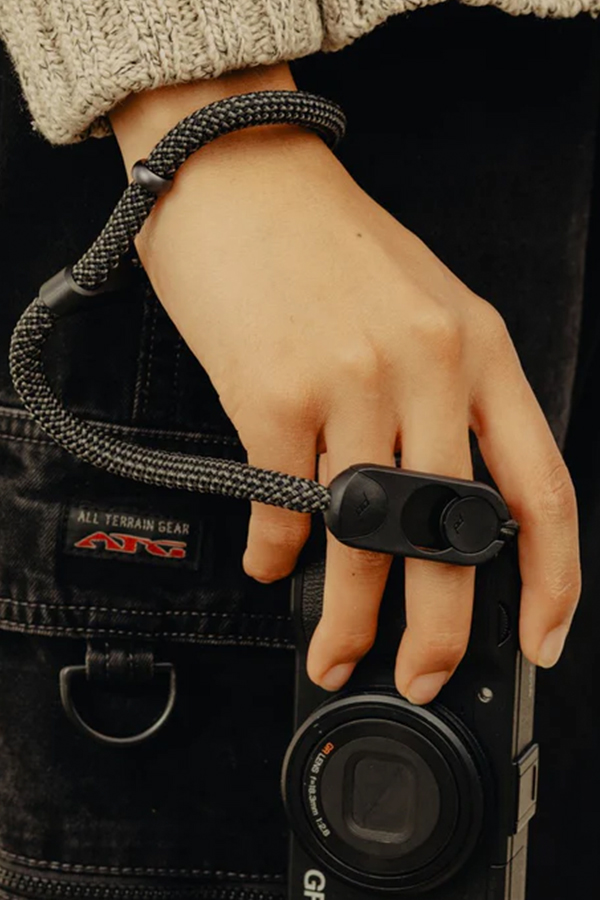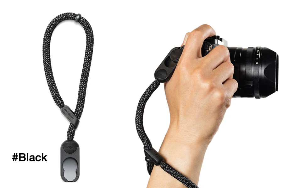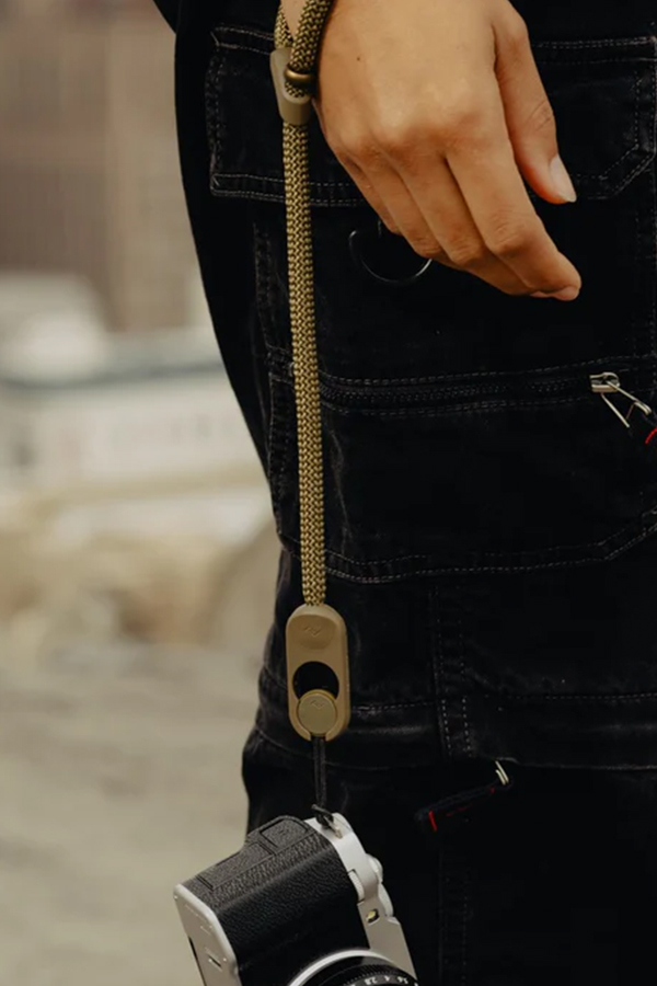 - ตัวล็อกอะลูมิเนียมเคลือบผิวแบบ Anodized ช่วยให้คุณปรับขนาดห่วงคล้องได้ มอบการป้องกันการตกที่ แนบเนียนและสบาย สำหรับกล้องทุกขนาด