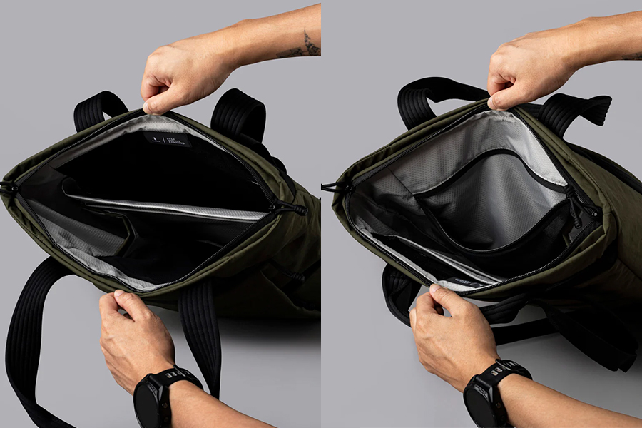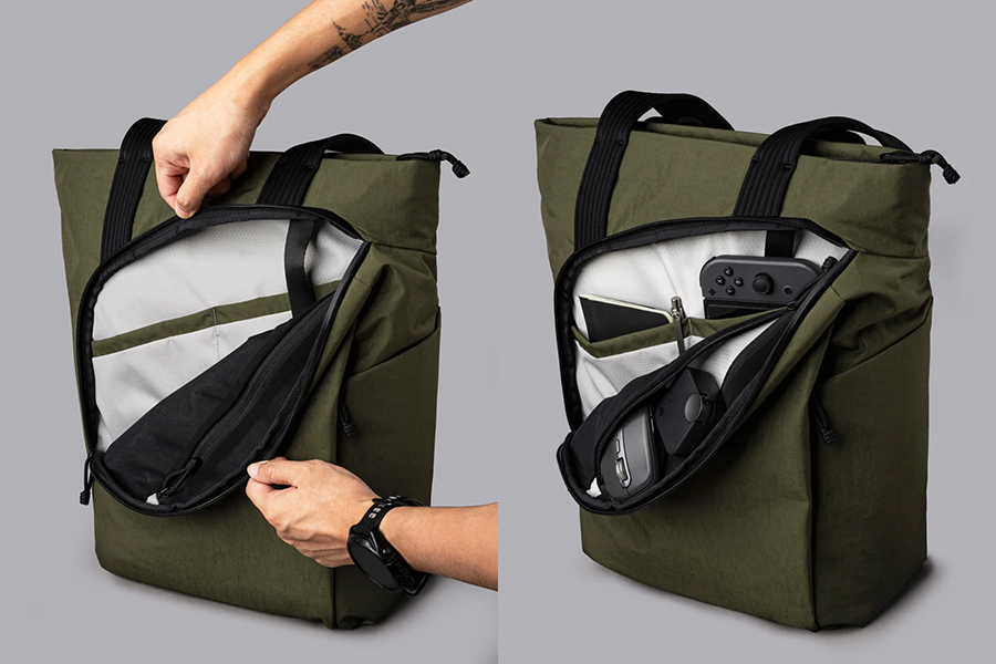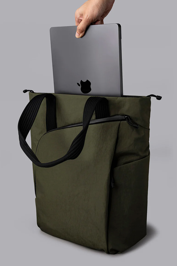 Flow Totepack สลับระหว่างโหมดกระเป๋าเป้สำหรับเดินทางไปทำงานและโหมดกระเป๋าโท้ทสำหรับช้อปปิ้งตอนเย็นได้ทันที Flow Totepack ปรับให้เข้ากับจังหวะของคุณและช่วยให้คุณก้าวไปข้างหน้าได้อย่างไม่สะดุด