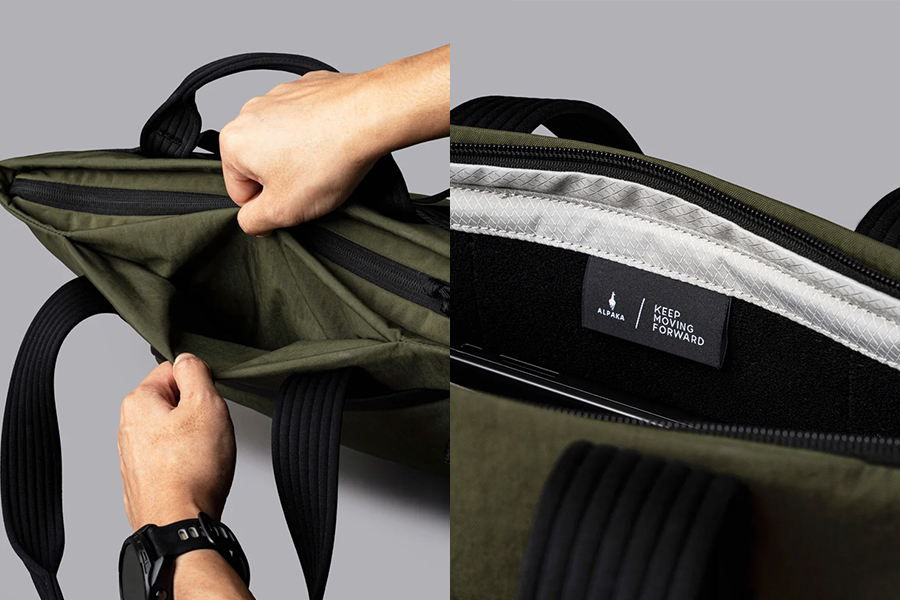 เป็นมากกว่ากระเป๋าโท้ท มากกว่ากระเป๋าเป้ Alpaka - Flow Totepack นิยามใหม่ของความอเนกประสงค์ ดีไซน์ทุกรายละเอียดอย่างตั้งใจ ช่องหลักเปิดกว้างพร้อมช่องด้านในแยกเก็บเป็นระเบียบ และหยิบใช้ได้ง่าย ผ่านช่องด้านหน้าและช่องด้านบน