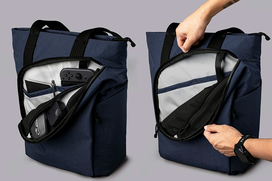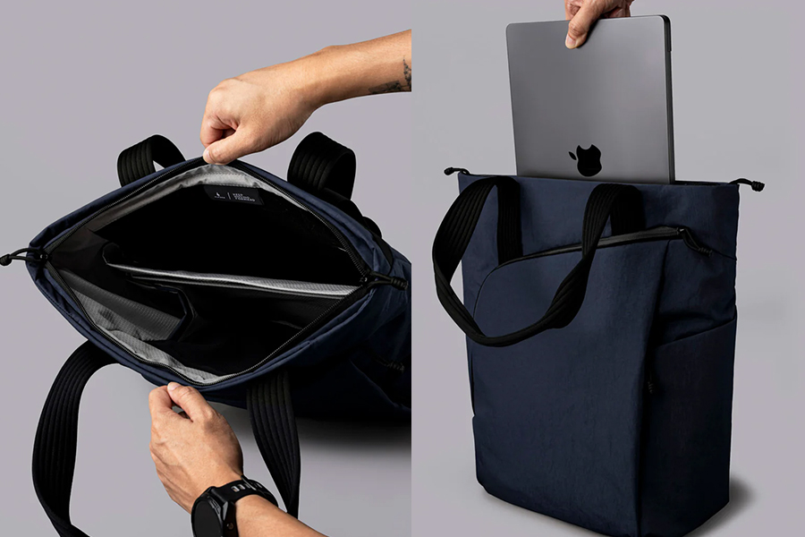 Flow Totepack สลับระหว่างโหมดกระเป๋าเป้สำหรับเดินทางไปทำงานและโหมดกระเป๋าโท้ทสำหรับช้อปปิ้งตอนเย็นได้ทันที Flow Totepack ปรับให้เข้ากับจังหวะของคุณและช่วยให้คุณก้าวไปข้างหน้าได้อย่างไม่สะดุด