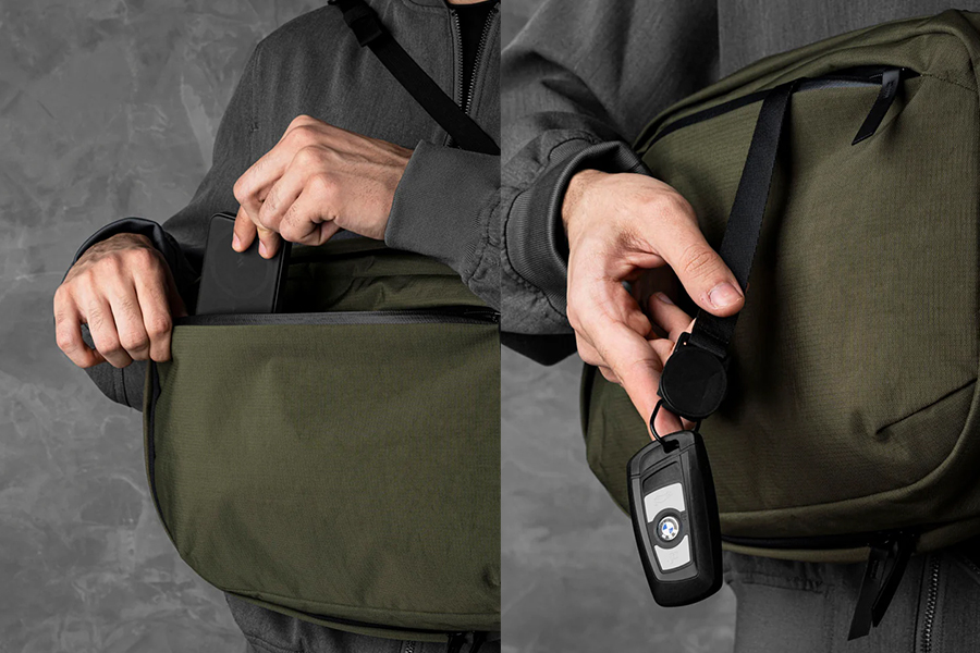 - ซิป Silent waterproof YKK Aquaguard zippers ที่ช่องด้านหน้า