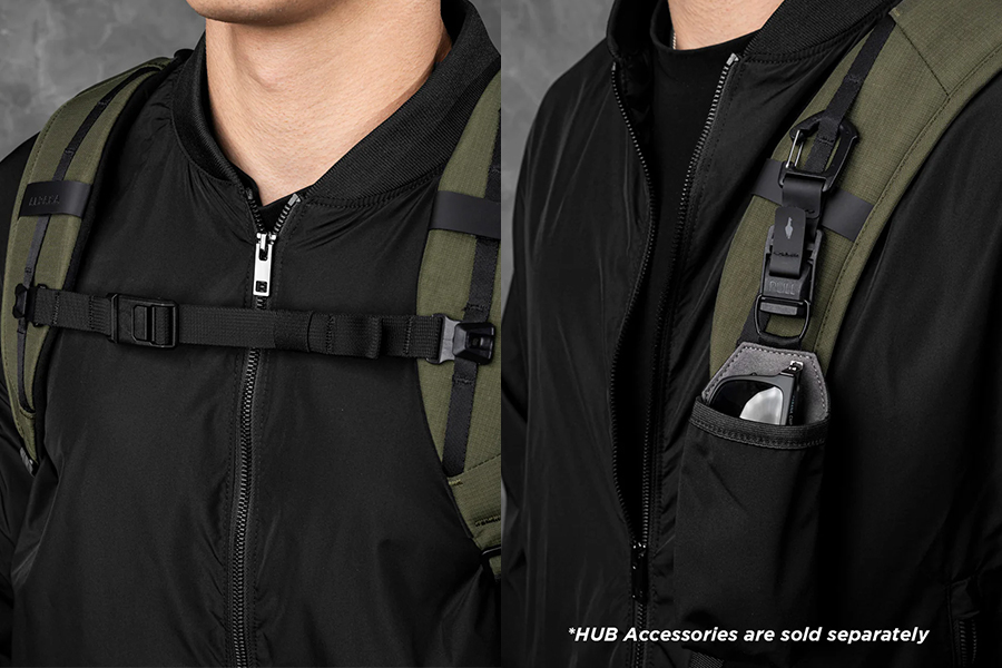 - สายสะพายไหล่บุด้วยโฟม EVA และห่วงรัด