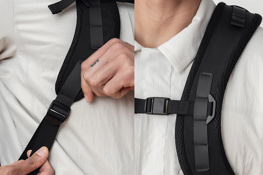 - สายสะพายไหล่รูปทรงตามหลักสรีรศาสตร์ พร้อมสายรัดหน้าอกแบบแม่เหล็กถอดได้