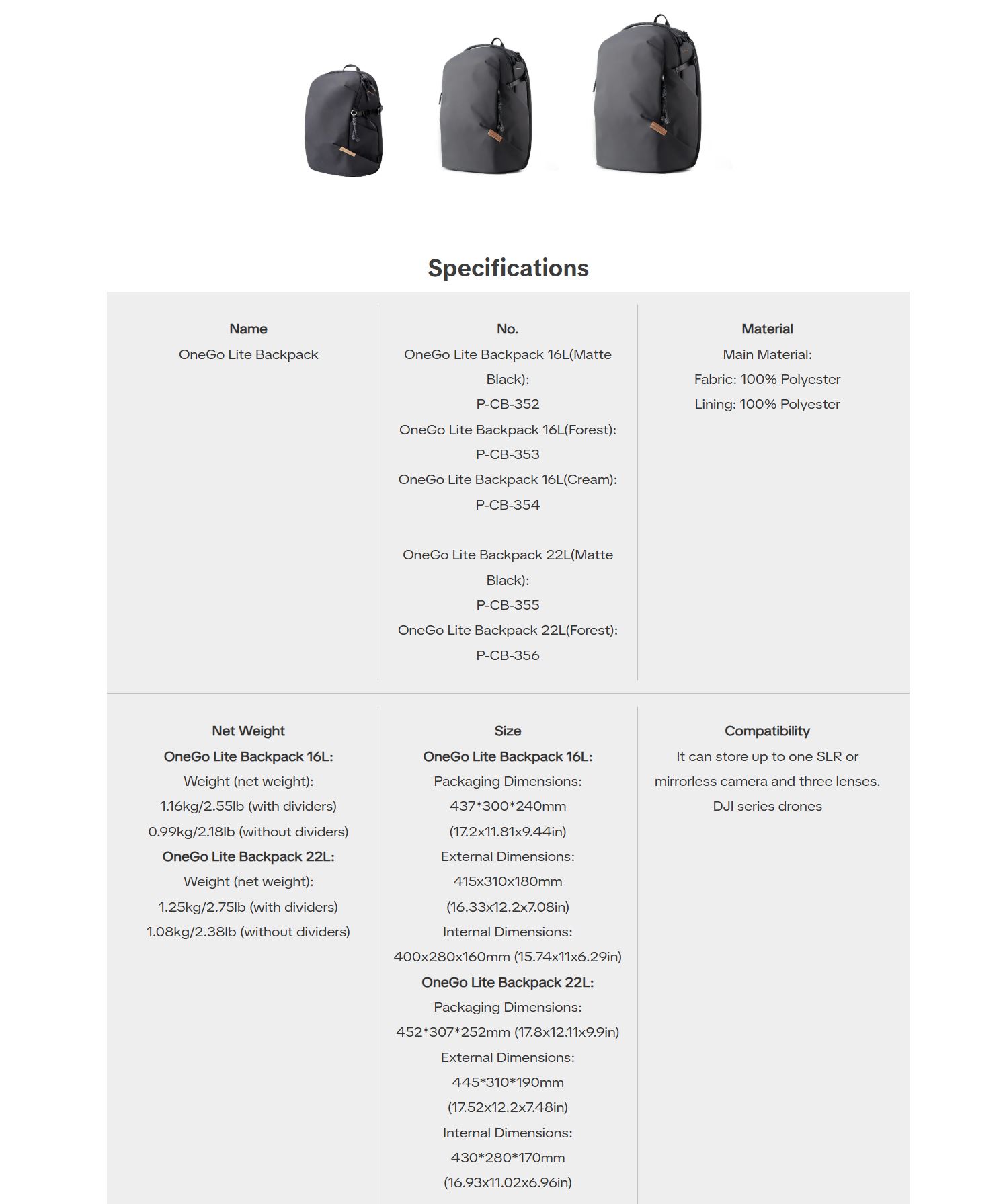 กระเป๋ากล้อง PGYTech - OneGo Lite Backpack 16L