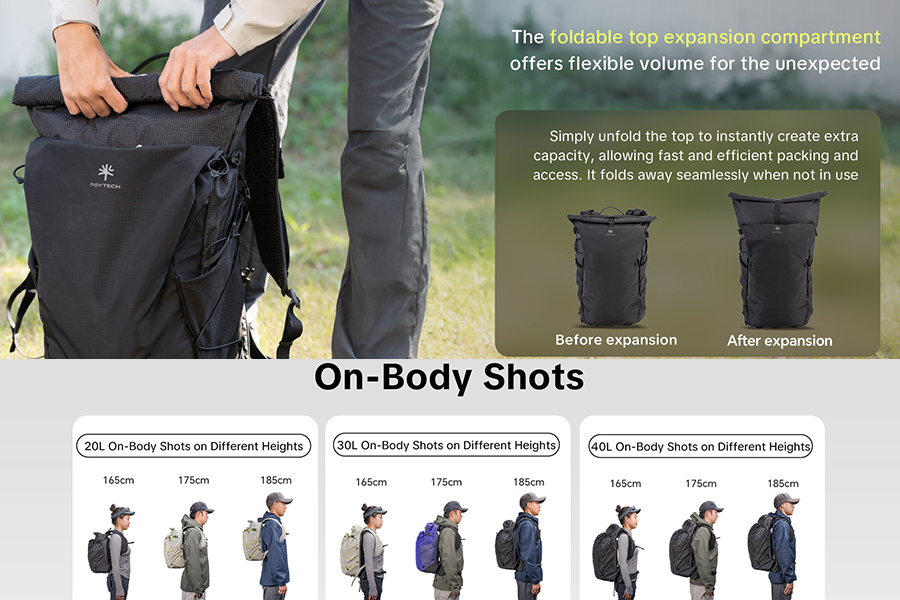 - ด้านบนออกแบบเป็นฝาพับขยายได้ รองรับสัมภาระเพิ่มเติมในชีวิตประจำวัน