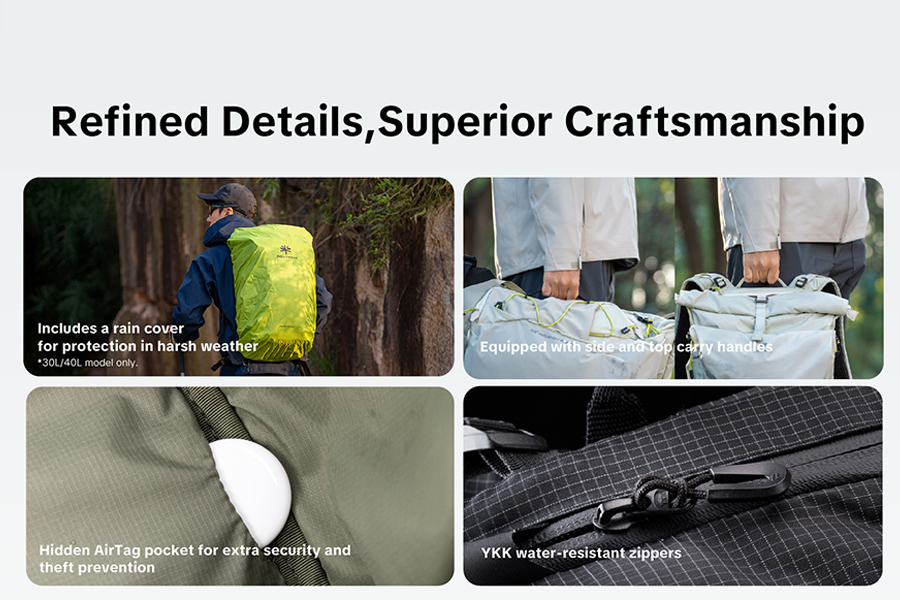 - จุดติดตั้ง Quick Release บนสายสะพาย และซิป YKK เคลือบกันน้ำ