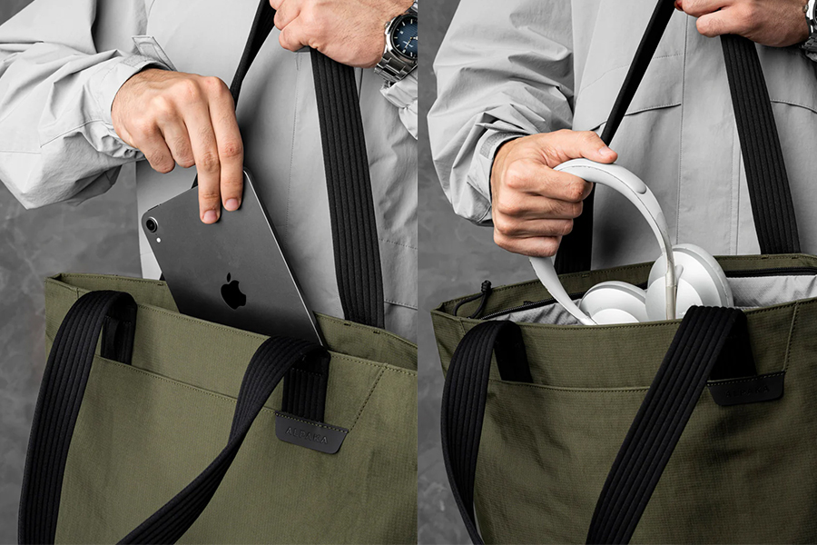 Alpaka - Flight Tote คือเพื่อนคู่ใจที่พร้อมลุยไปกับคุณในทุกๆ วัน พกพาแล็ปท็อป โทรศัพท์ ขวดน้ำ และของใช้อื่นๆ ได้อย่างสะดวกสบายด้วยสายสะพายไหล่แบบทอที่ยึดเกาะแน่นหนาเป็นพิเศษ ไม่ว่าจะสะพายไปสวนสาธารณะ ที่ทำงาน สนามบิน มีให้เลือกทั้งไซส์ M และ L