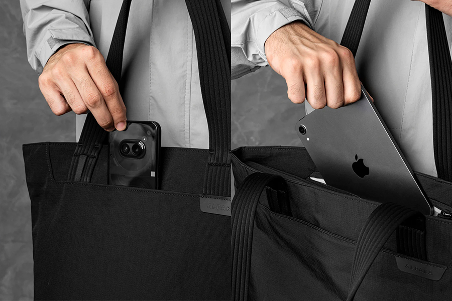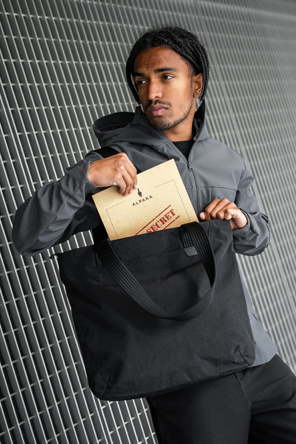 Alpaka - Flight Tote คือเพื่อนคู่ใจที่พร้อมลุยไปกับคุณในทุกๆ วัน พกพาแล็ปท็อป โทรศัพท์ ขวดน้ำ และของใช้อื่นๆ ได้อย่างสะดวกสบายด้วยสายสะพายไหล่แบบทอที่ยึดเกาะแน่นหนาเป็นพิเศษ ไม่ว่าจะสะพายไปสวนสาธารณะ ที่ทำงาน สนามบิน มีให้เลือกทั้งไซส์ M และ L