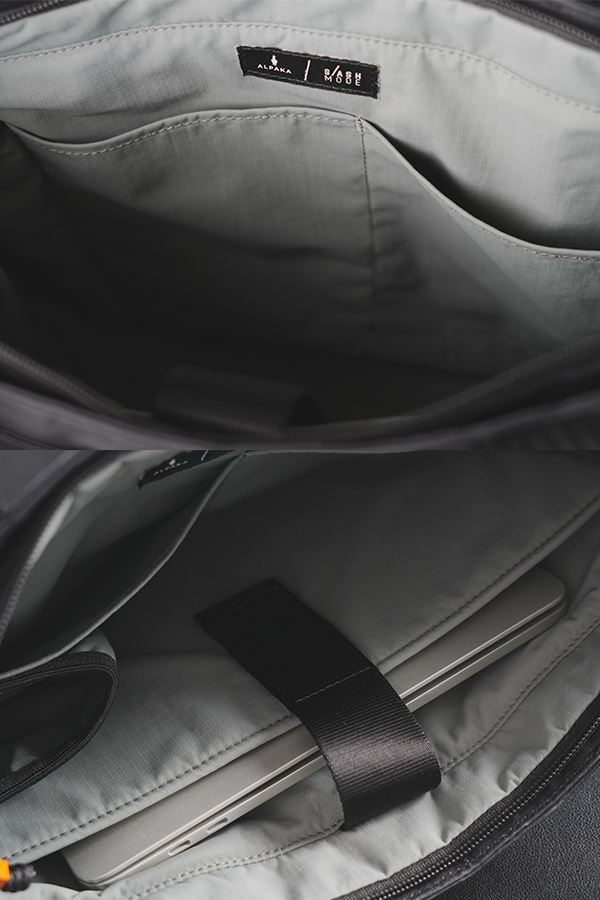 - ช่องบุนุ่มสำหรับใส่ Macbook 13" หรือ 14" ** ขนาด 14" จะพอดีขอบบน