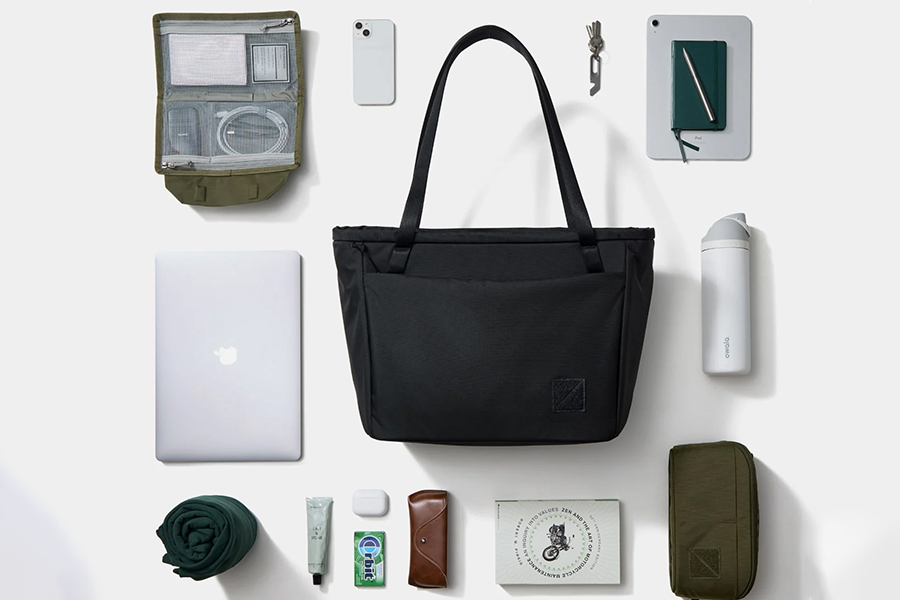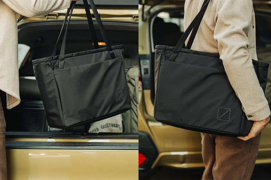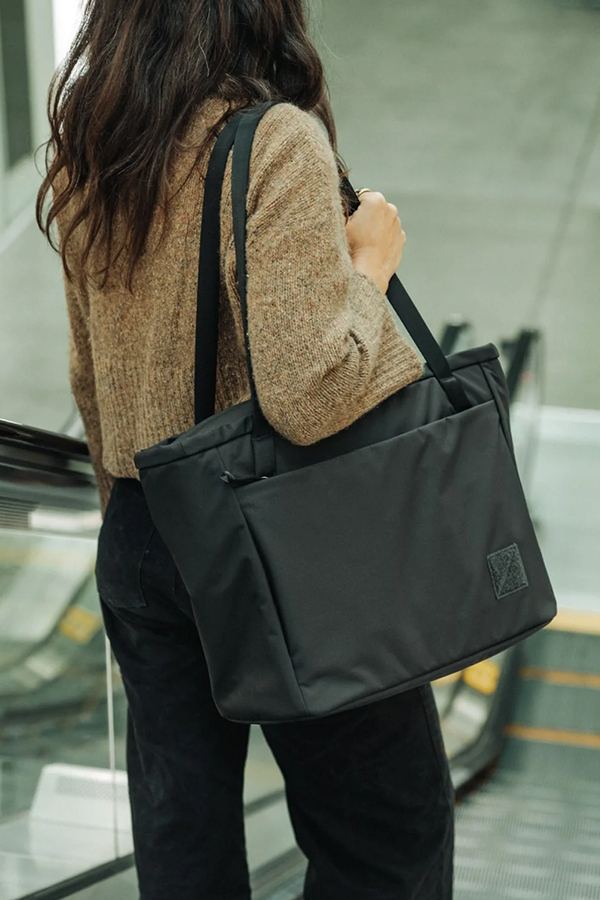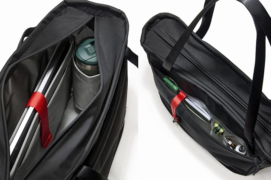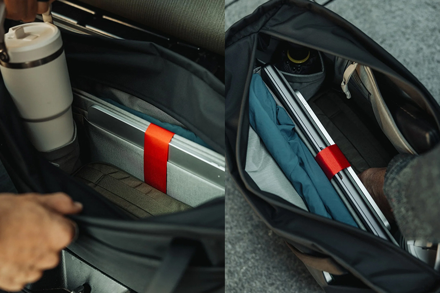 Standard Gray 420d HT nylon 6,6 with PU coating // Handles: Custom-woven tubular nylon webbing with a foam core and three low-profile N52 magnets set in the apex of each handle // Foam: 3mm cross-linked polyethylene for structure and padding // Magnet Closure: Two rows of stacked cylindrical neodymium grade N52 magnets// Zippers: Durable luggage zippers. YKK #8RC. Exterior zippers are dipped with DWR treatment