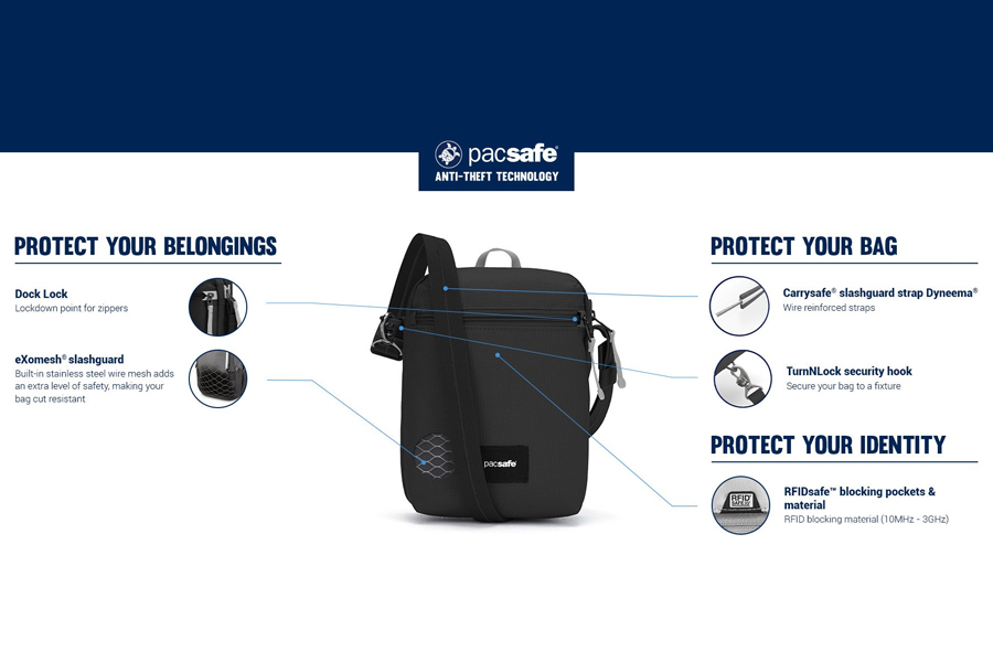 - สะพายที่ทนทานต่อการตัด ยึดวัตถุ เช่น เสา ขาโต๊ะ เพื่อปกป้องกระเป๋าของคุณ