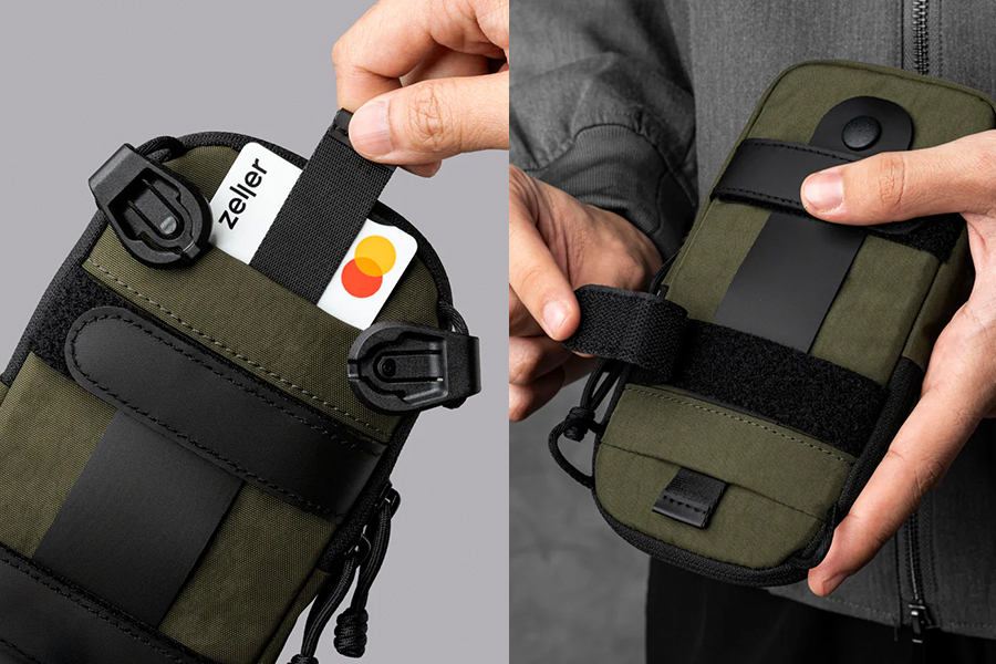 - ช่องด้านหน้าทำจากวัสดุ Stretch-dyne เข้าถึงง่าย
