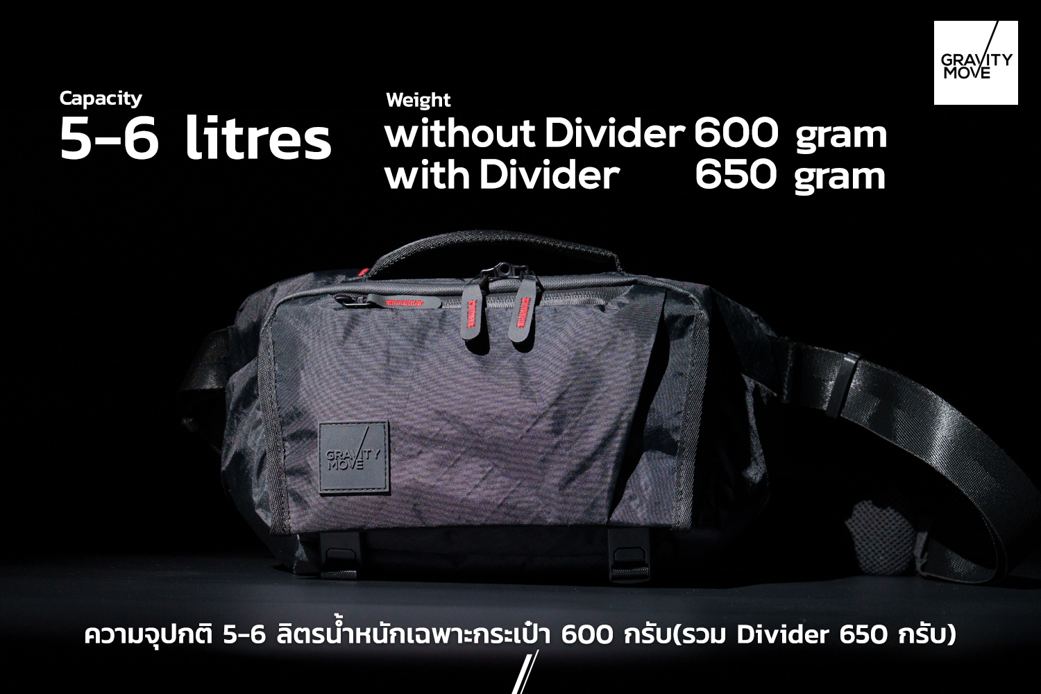 - ความจุปกติ 5-6 ลิตร น้ำหนักเฉพาะกระเป๋า 600 กรัม(รวม Divider 650 กรัม)