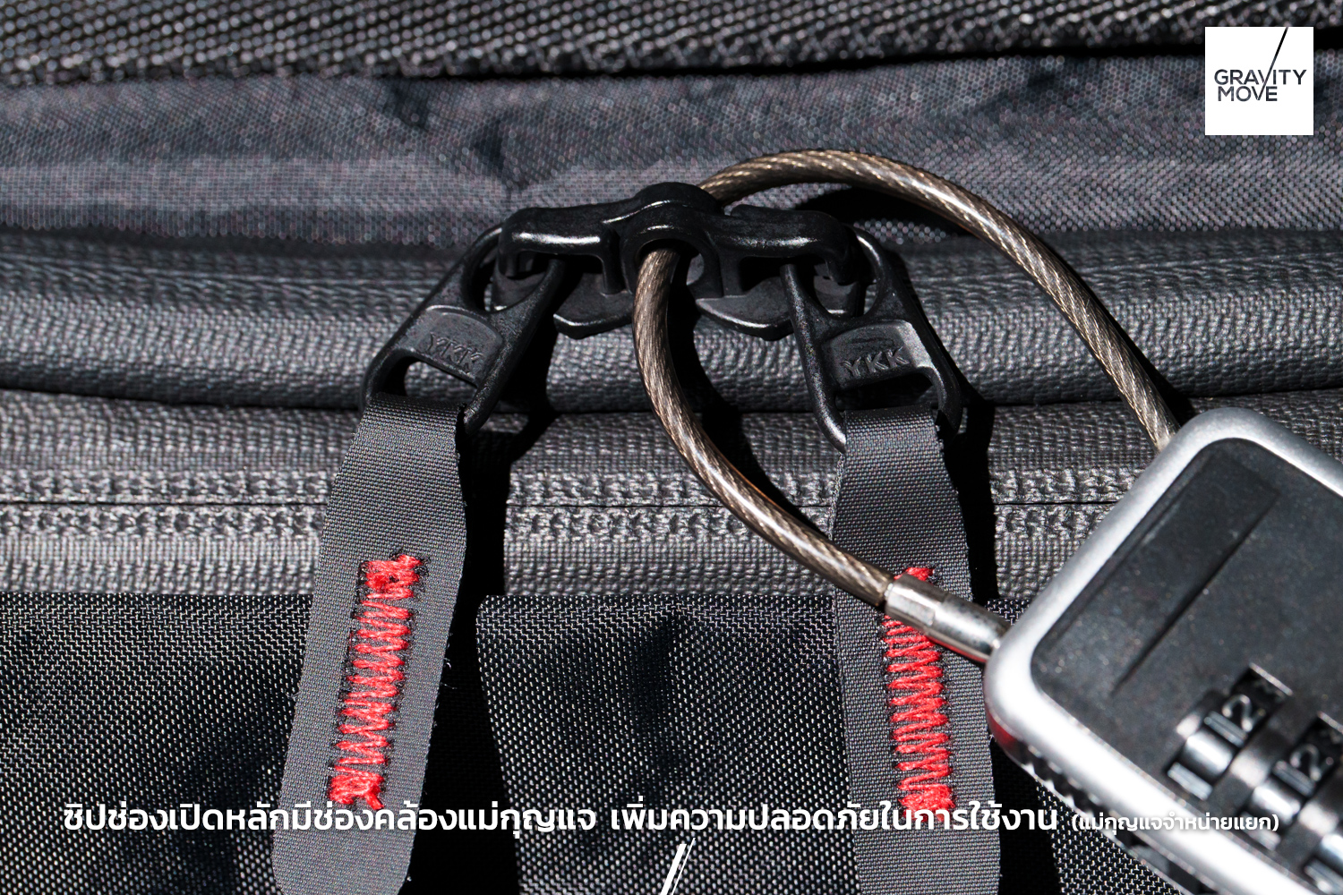 - ซิปช่องเปิดหลักมีช่องคล้องแม่กุญแจ เพิ่มความปลอดภัยในการใช้งาน (แม่กุญแจจำหน่ายแยก)