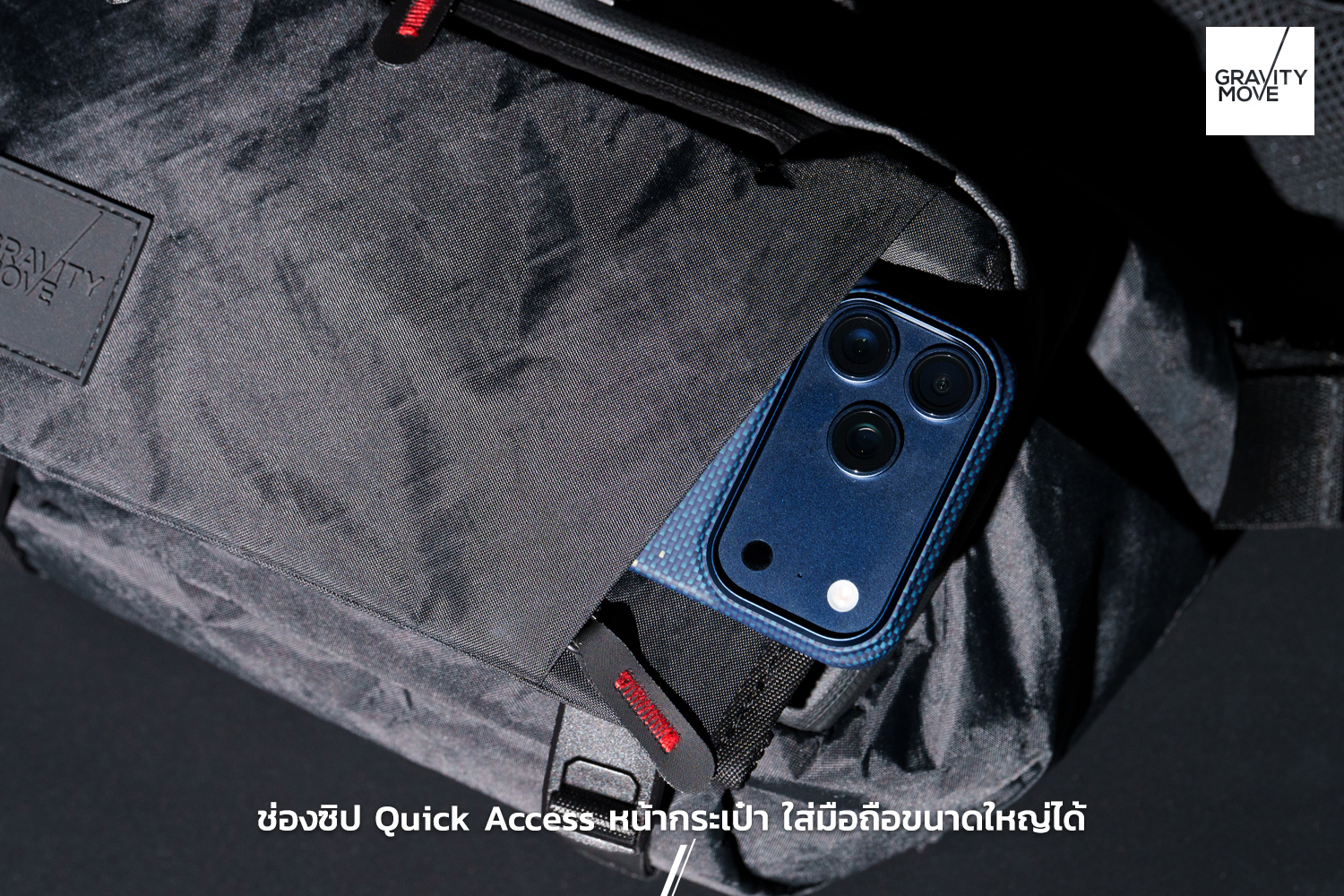 - ช่องซิป Quick Access หน้ากระเป๋า ใส่มือถือขนาดใหญ่ได้
