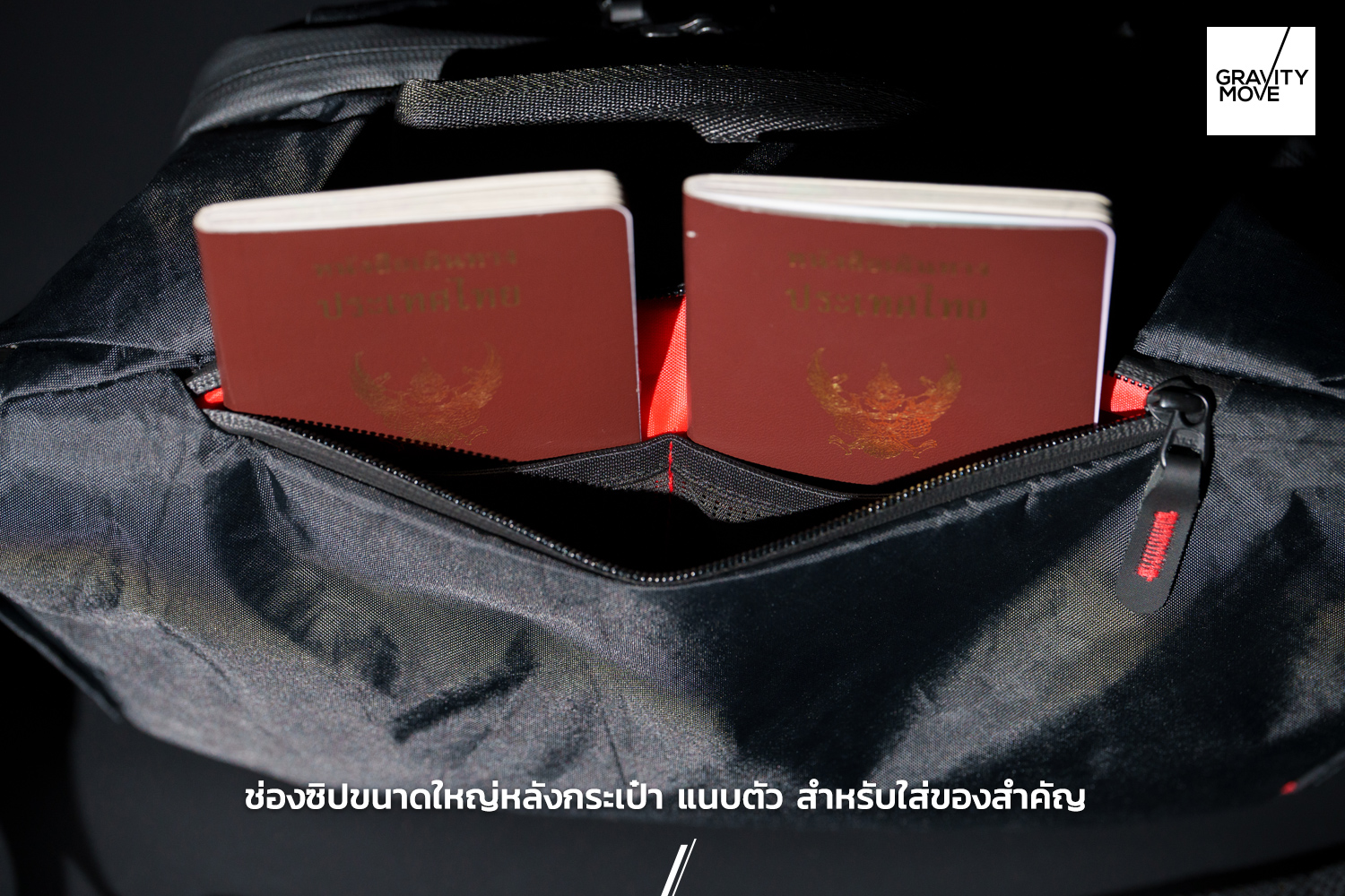 - ช่องซิปขนาดใหญ่หลังกระเป๋า แนบตัว สำหรับใส่ของสำคัญ