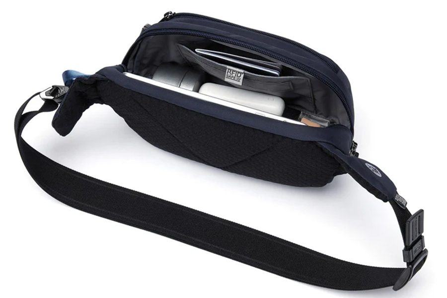 กระเป๋าคาดเอวสำหรับคนแอคทีฟ พกพาของใช้ส่วนตัว กุญแจรถ กระเป๋าสตางค์ สมาร์ทโฟน แท็บเล็ต ใช้งานสะดวก มาพร้อมฟีเจอร์กันขโมย ป้องกันการกรีด ตัดเย็บจากวัสดุ PET เป็นมิตรกับสิ่งแวดล้อม