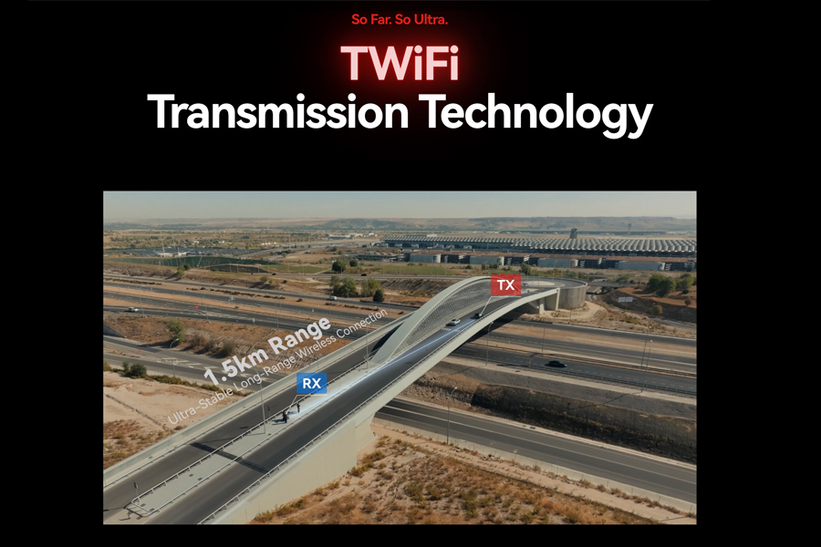 - เทคโนโลยี TWiFi: เทคโนโลยีเฉพาะที่ช่วยให้ส่งสัญญาณได้ไกลถึง 1.5 กิโลเมตร (4,900 ฟุต) ในระยะสายตา (Line-of-Sight)