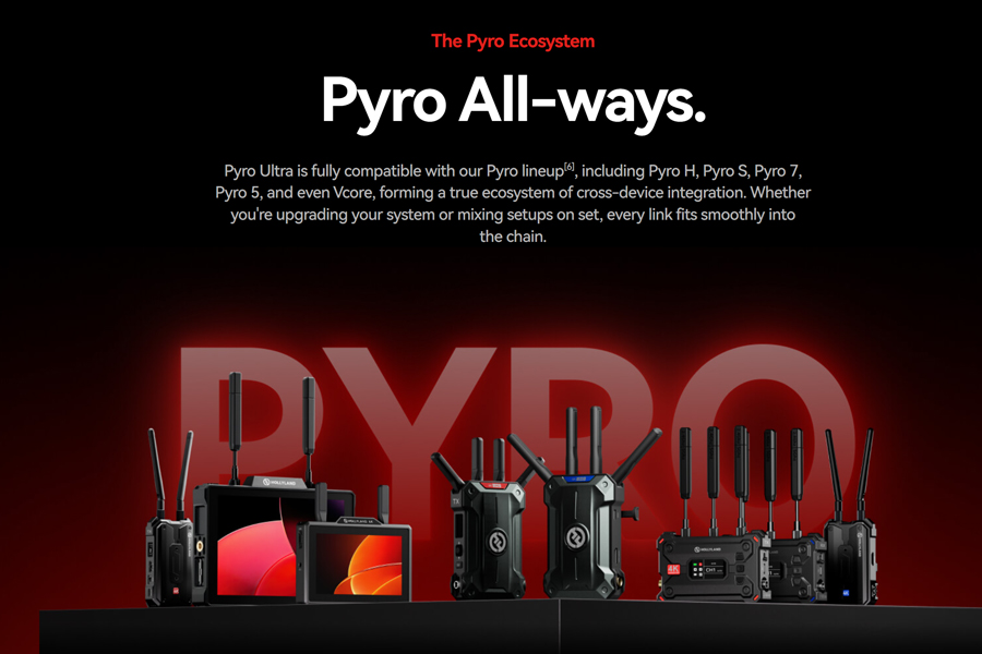 Ecosystem Compatibility: Non-Broadcast Mode: Pyro H, Pyro S, Pyro 7, Pyro 5, Pyro 5 4K, Vcore, Broadcast Mode: Pyro 5, Pyro 5 4K, Pyro 7, Pyro S (Available in June, 2026)