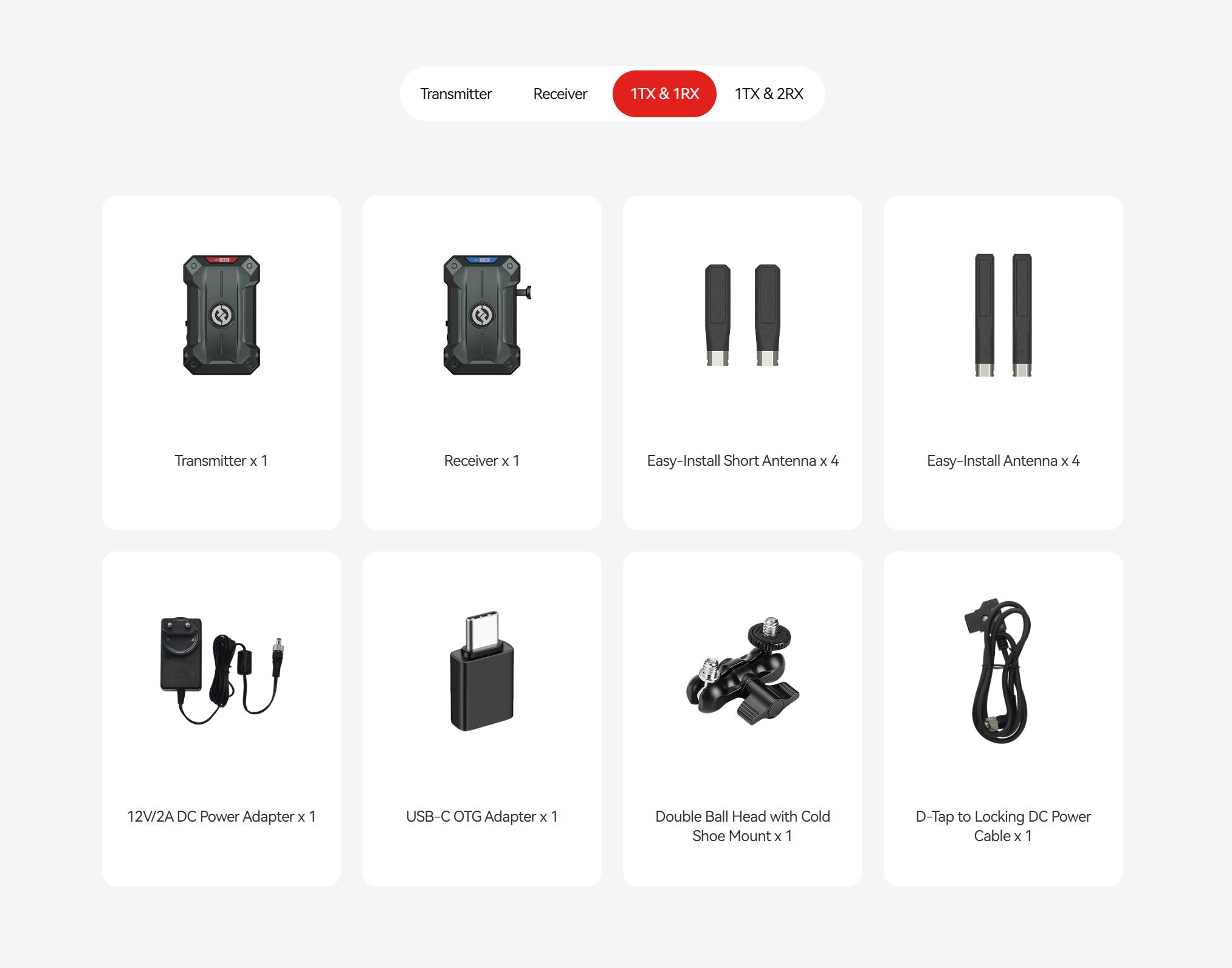 Power Supply TX: NPF/DC (Locking), RX: V-mount/DC (Locking)