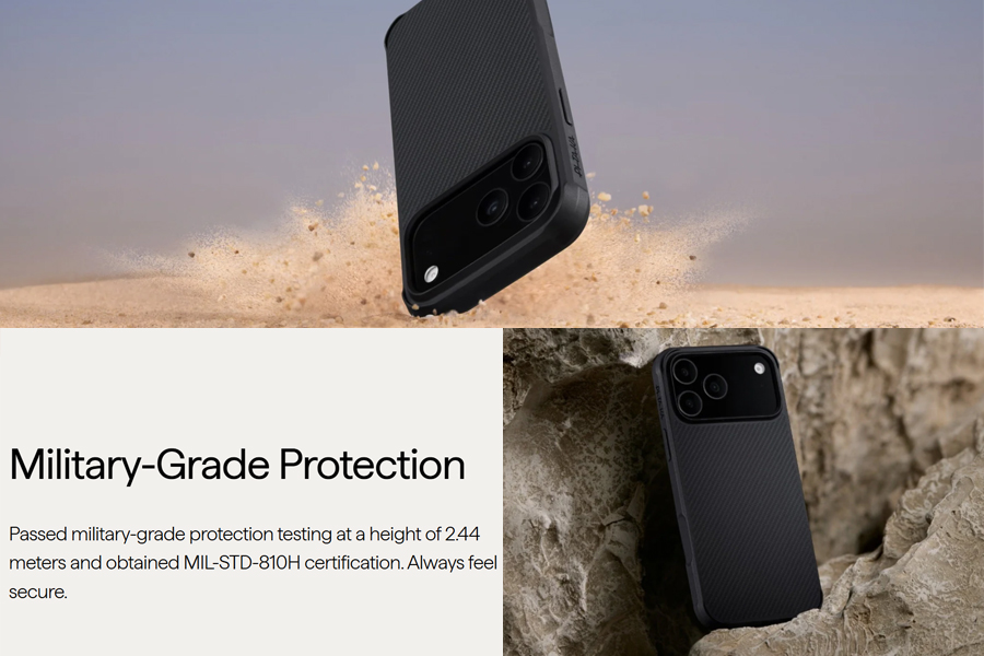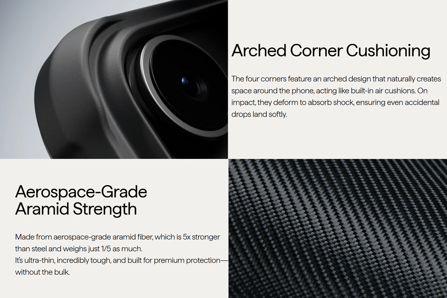 - เคส Aramid Fiber แท้ที่เพิ่มความแข็งแกร่งของ TPU เสริมเข้ามา