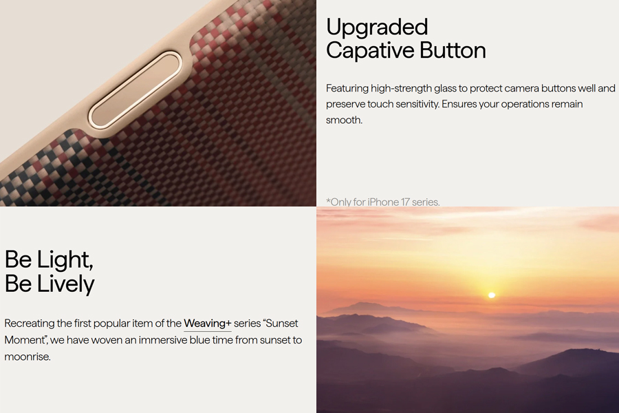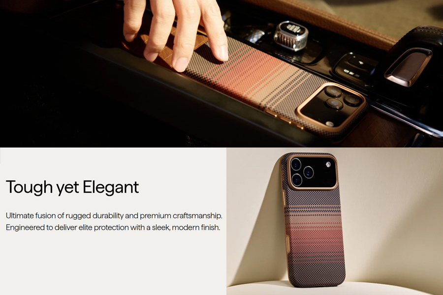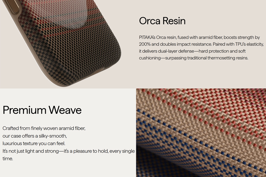 - โครงสร้าง Aramid Fiber ผสมผสานกับ TPU เสริมแรงรอบมุม ออกแบบมาเพื่อซับแรงกระแทกจากการตกโดยตรง