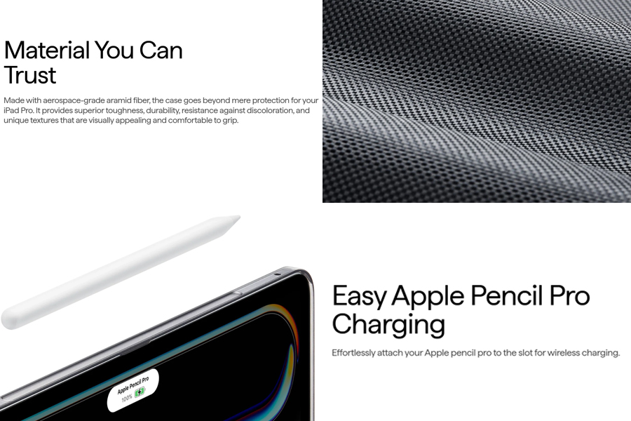 - ใช้งานร่วมกับ Apple Pencil Pro ได้ครบทุกฟังก์ชั่นไม่ถูกบดบังจากตัวเคส