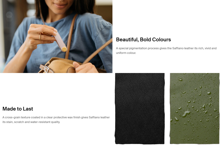 - ผลิตจากหนัง Saffiano ที่หรูหราและทนทานสูง