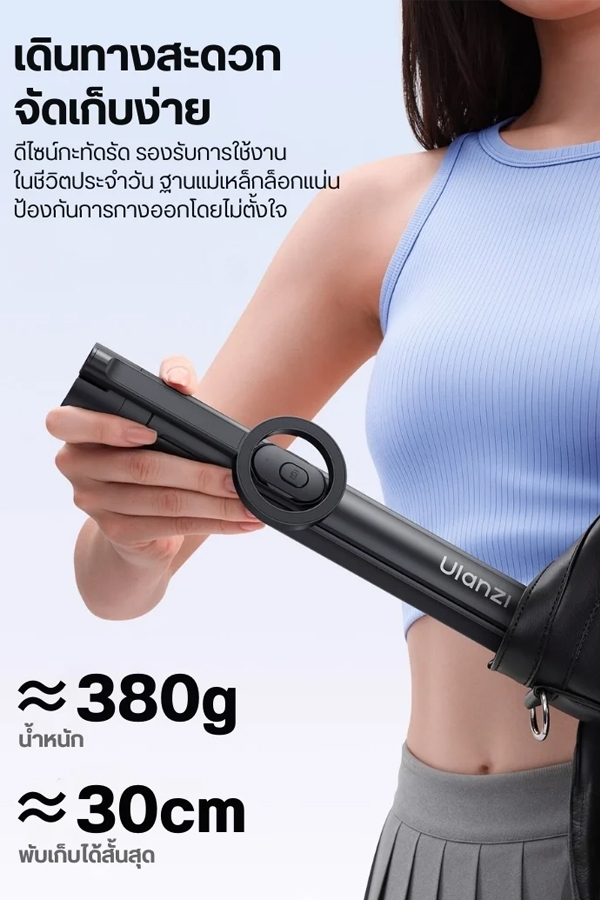 - พกพาสะดวก – น้ำหนักประมาณ 380 กรัม พับได้สั้นสุด 30 ซม. ใส่กระเป๋าเป้ได้สบาย