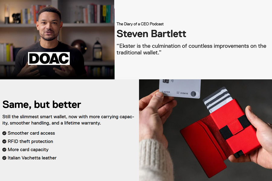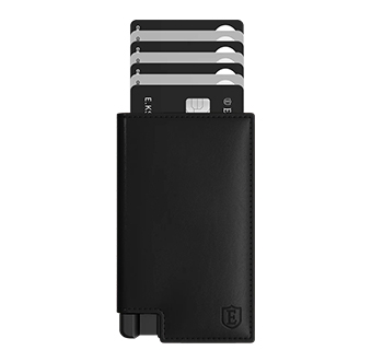 Ekster - Wallet Pro กระเป๋าสตางค์หนังสุดสมาร์ทที่บางที่สุด ผลิตจากอะลูมิเนียมรีไซเคิล 100% และหนัง Vachetta อิตาลีสุดหรู ออกแบบให้มีช่องเก็บที่เพรียวบาง เปิดหยิบบัตรได้รวดเร็วเพียงกดปุ่ม